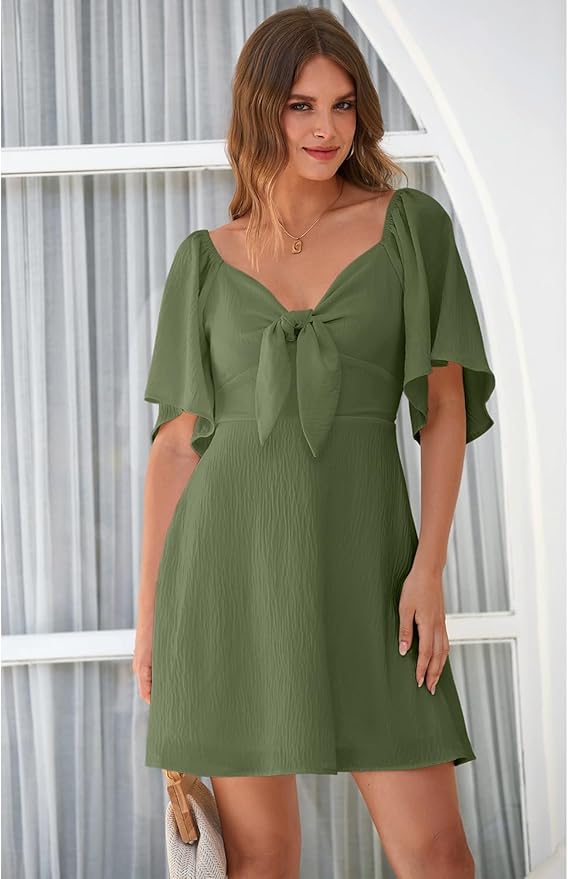 6️⃣ YOBECHO Ruffle Sleeve Sweetheart Neckline Dress